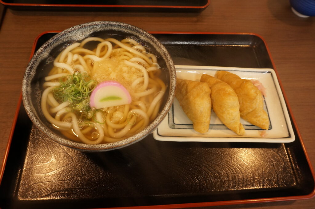 うどんは柔らかめで出汁が効いてます、お稲荷さんはお揚げの甘さがしみますね