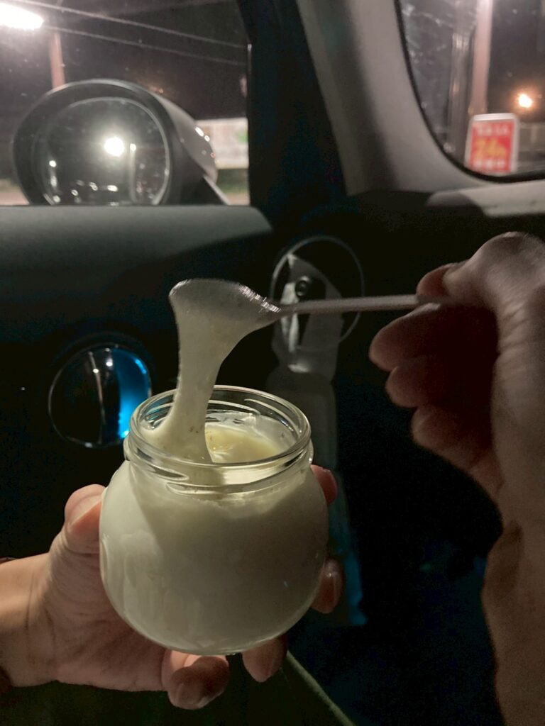 めちゃ伸びますね、クリーミーなわらび餅って感じです
