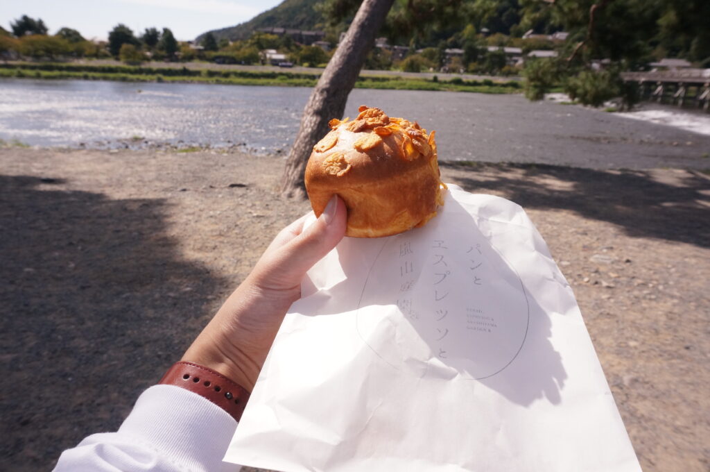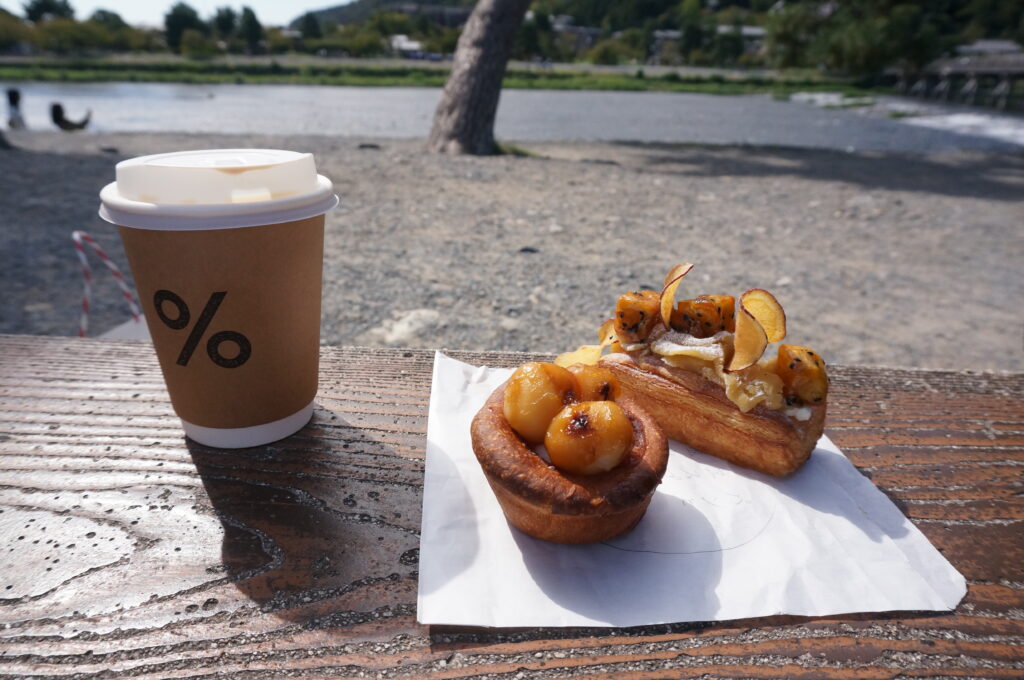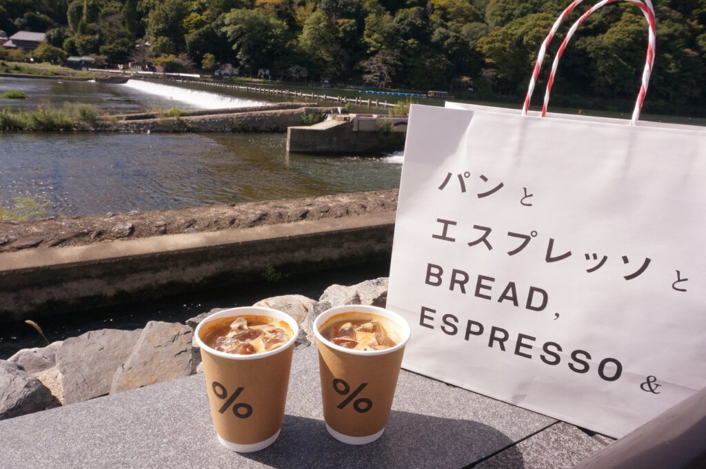 コーヒーはそちらで買って渡月橋を眺めながら朝食にします